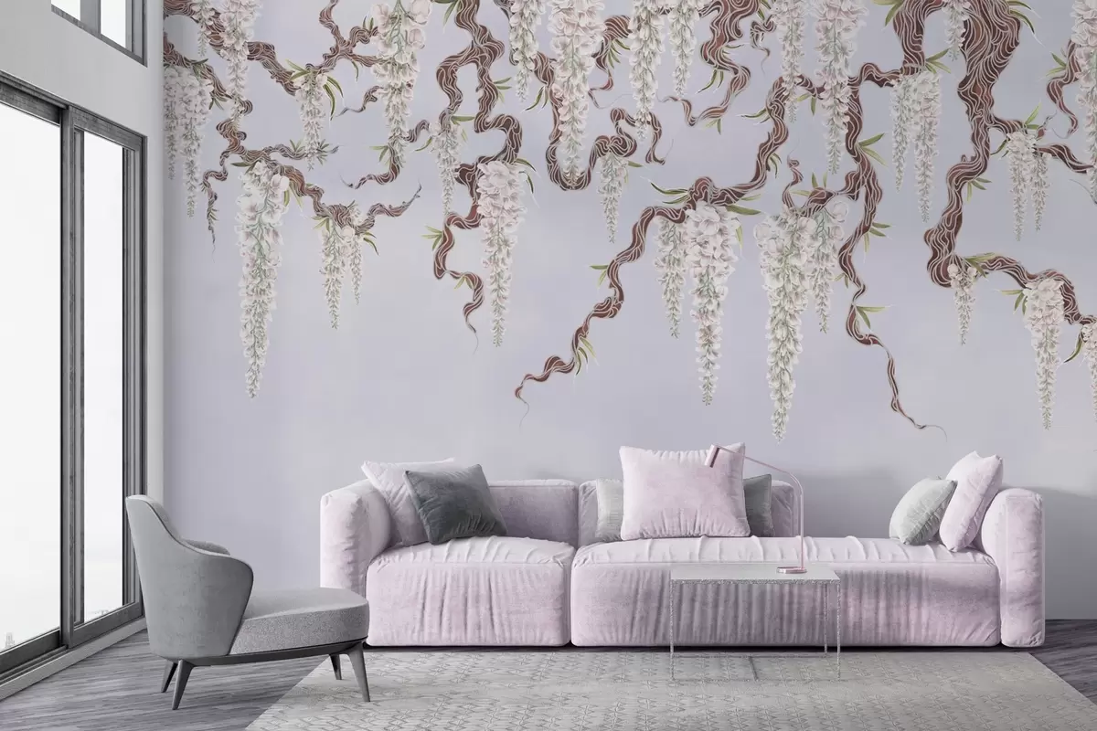 Fotomurales Glicinias rosas sobre un fondo grunge claro y pastel Nr. w02372v2