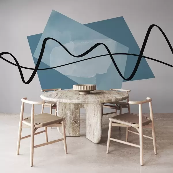 Fotomurales Líneas negras y formas azules abstractas Nr. w02377v1