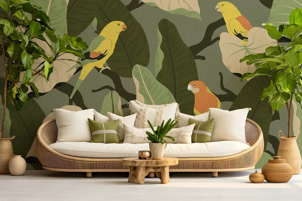 Fotomurales hojas tropicales con loros Nr. w02402