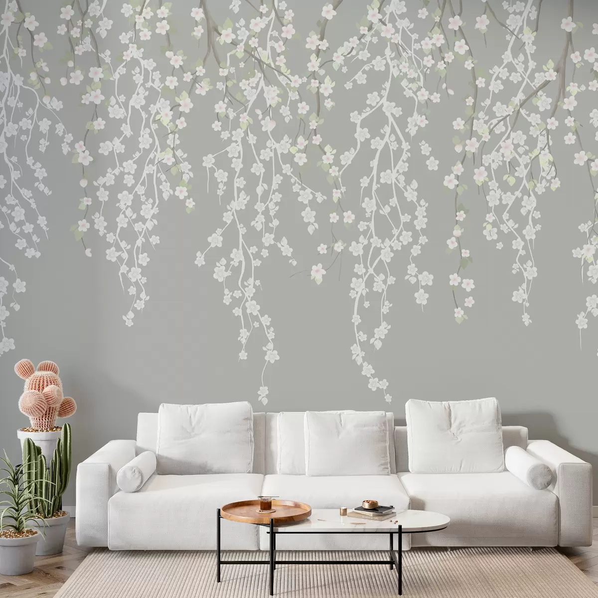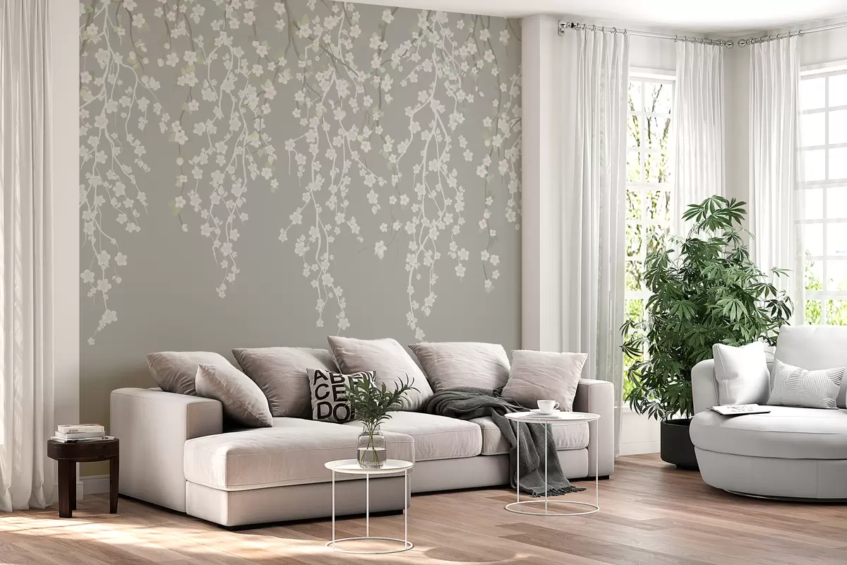 Fotomurales Ramas delicadas con flores sobre fondo gris Nr. w02479v1