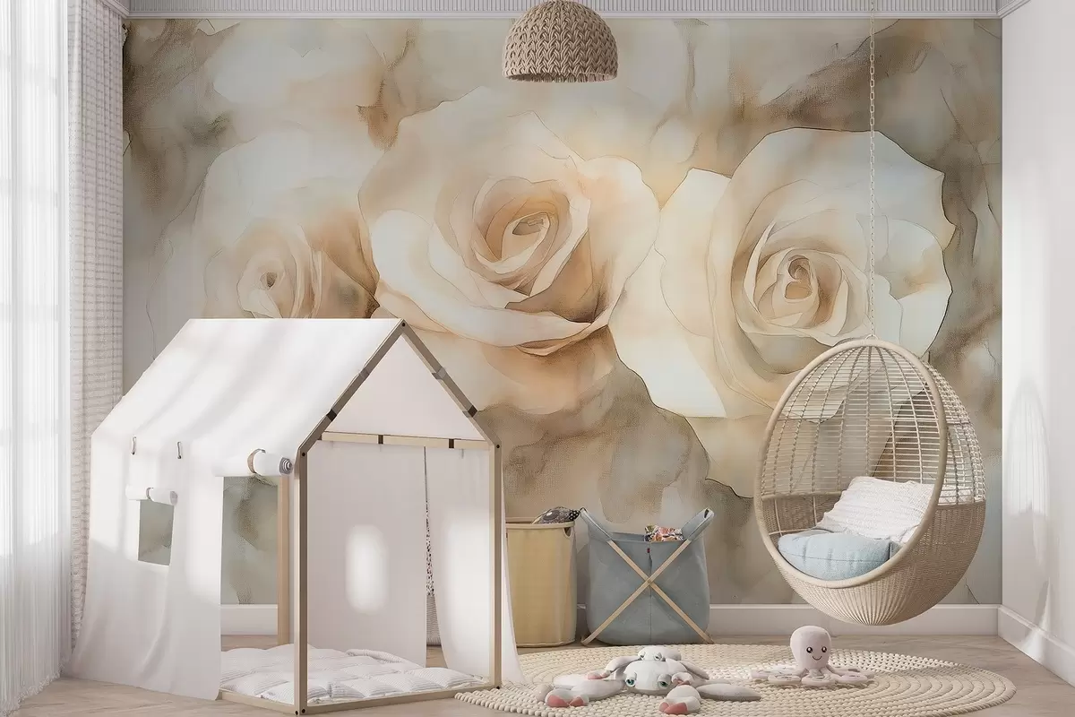 Fotomurales Hermosas rosas, estilo acuarela, colores beige, bohemio Nr. w02492