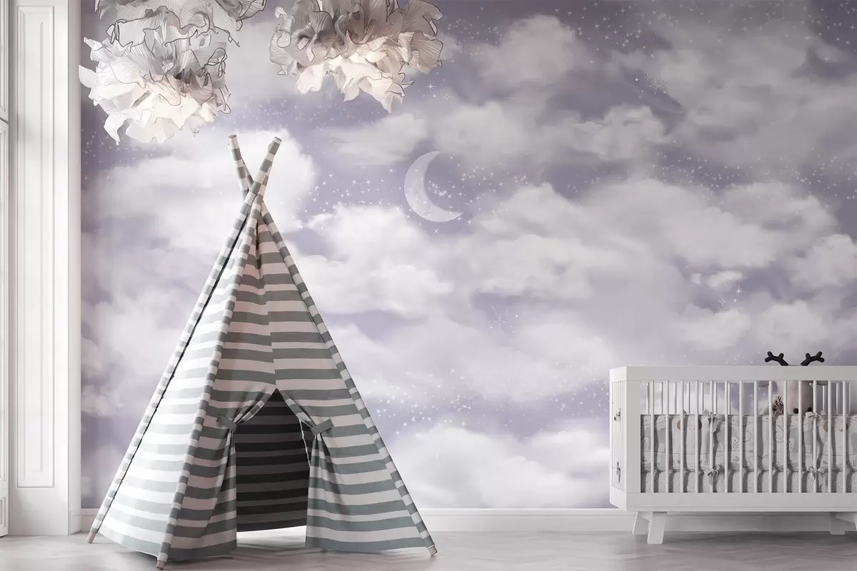 Fotomurales Cielo estrellado con luna y nubes, de ensueño, etéreo, suaves colores morados Nr. w02515v4