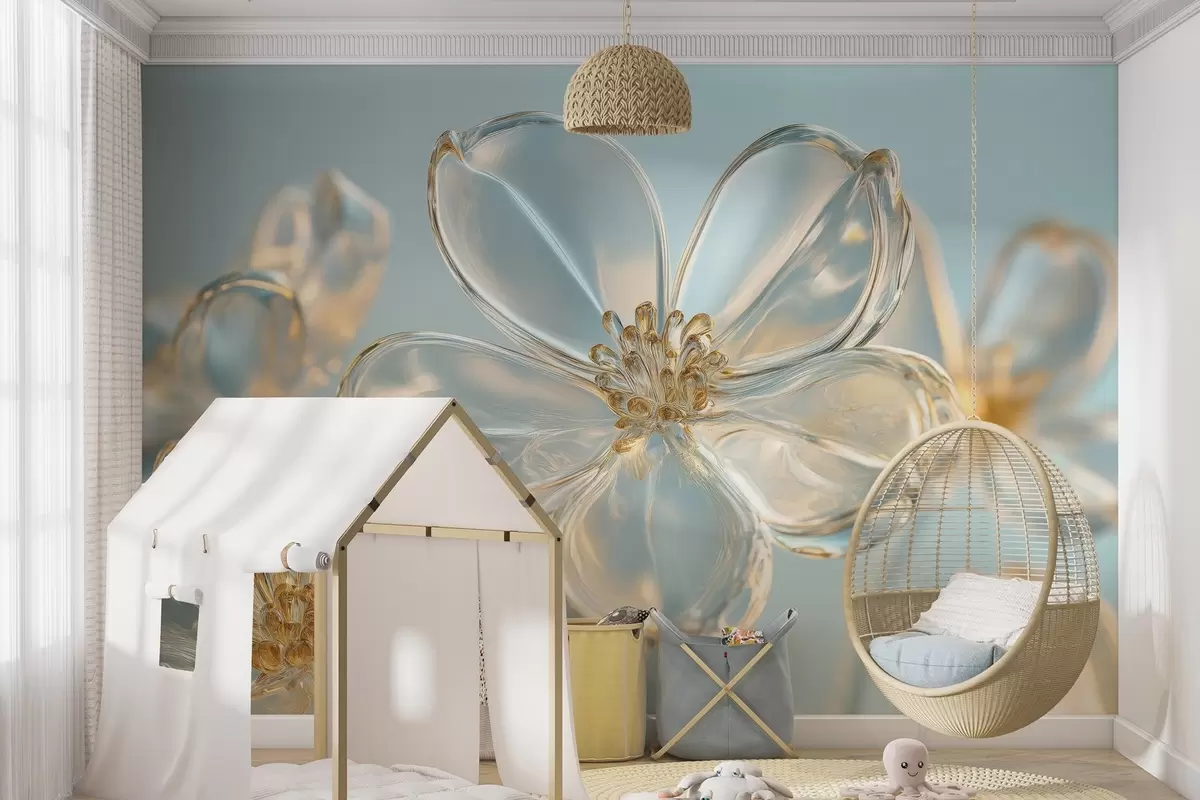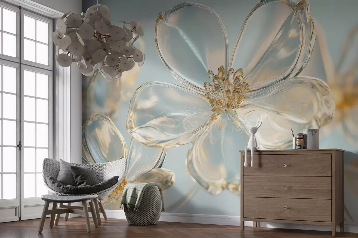 Fotomurales grandes flores de cristal en tonos azules Nr. w02521