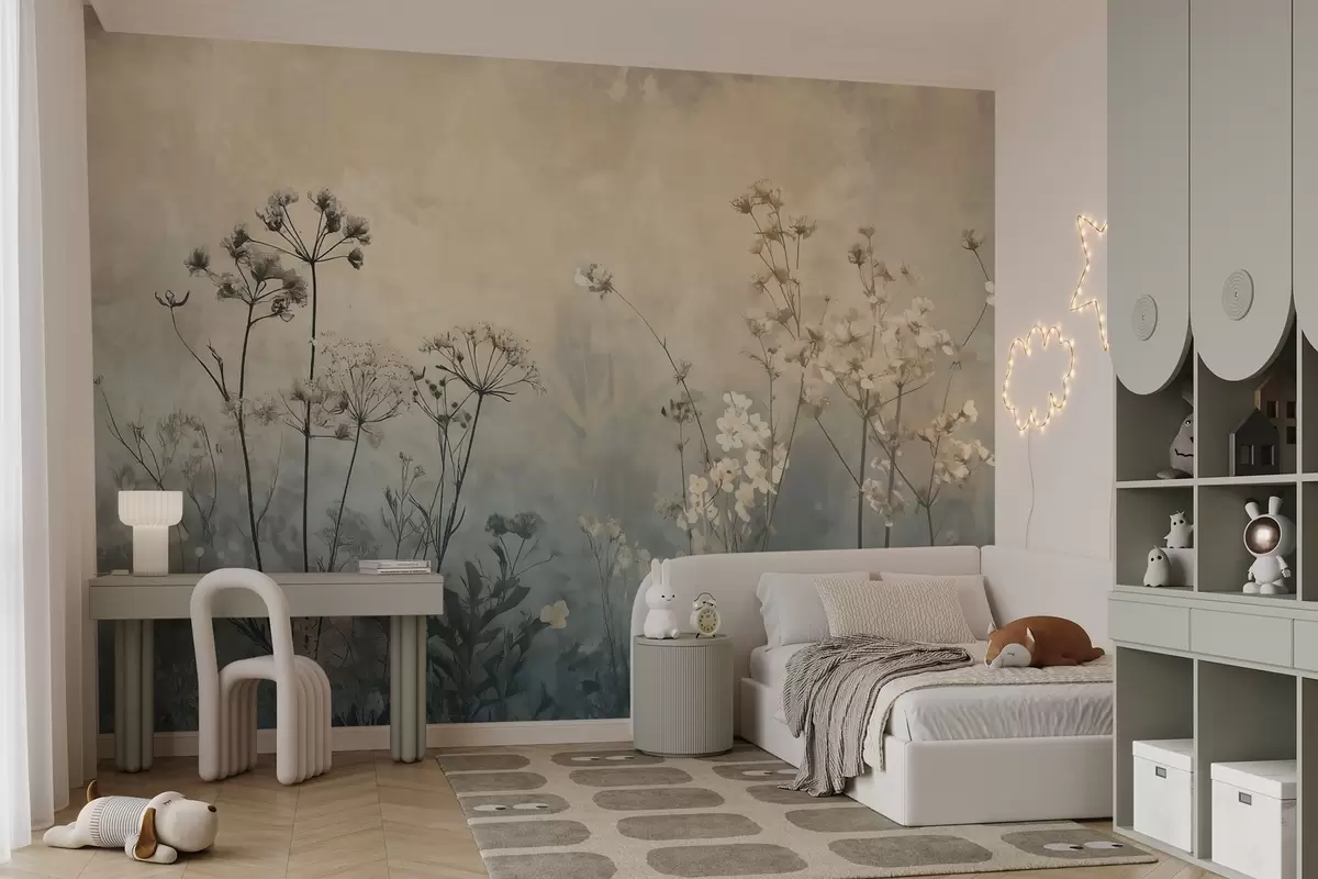 Fotomurales papel pintado ecológico con flores silvestres y plantas sobre fondo texturizado Nr. w02685