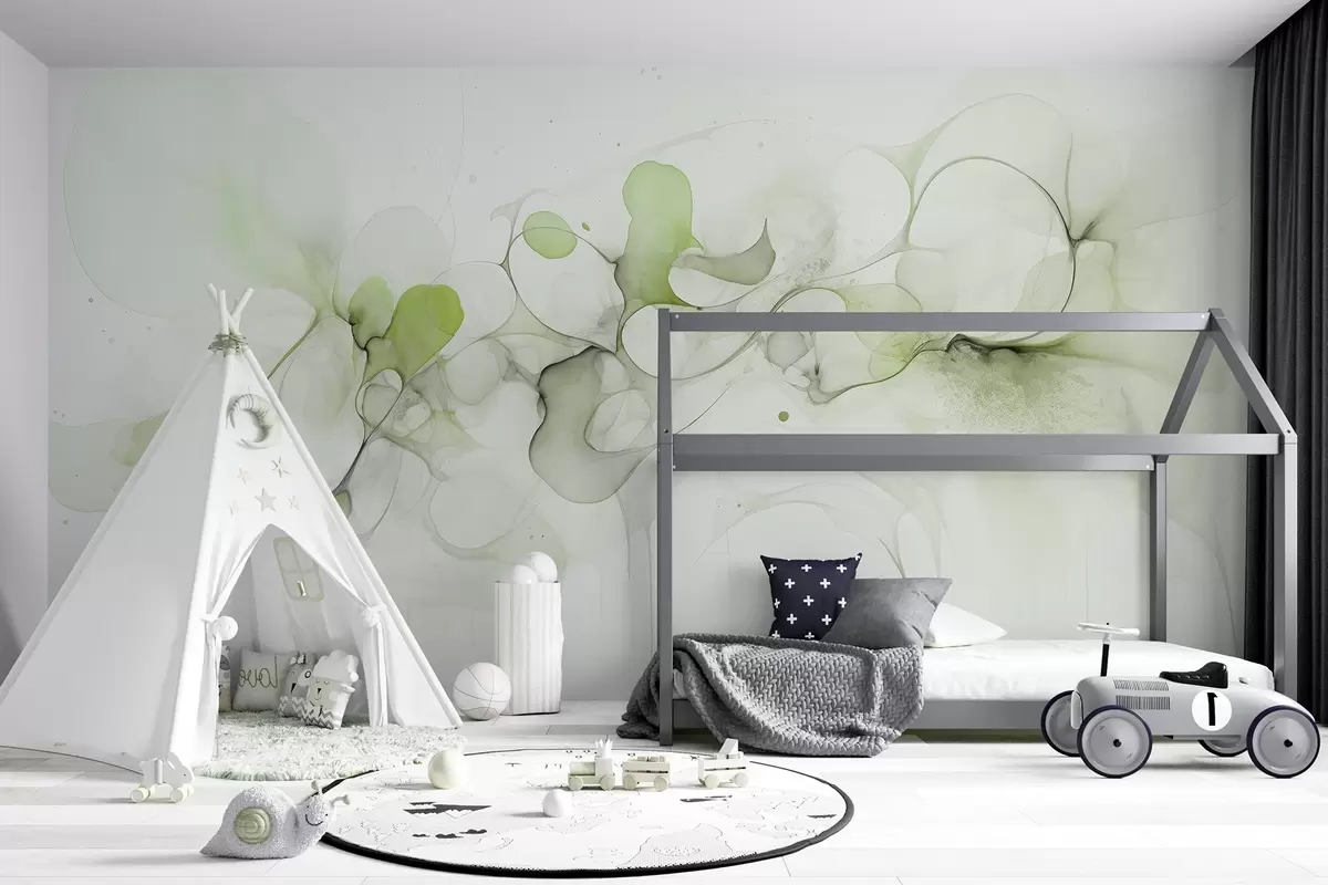 Fotomurales Estilo artístico fluido, abstracción, colores verdes suaves Nr. w02745v1