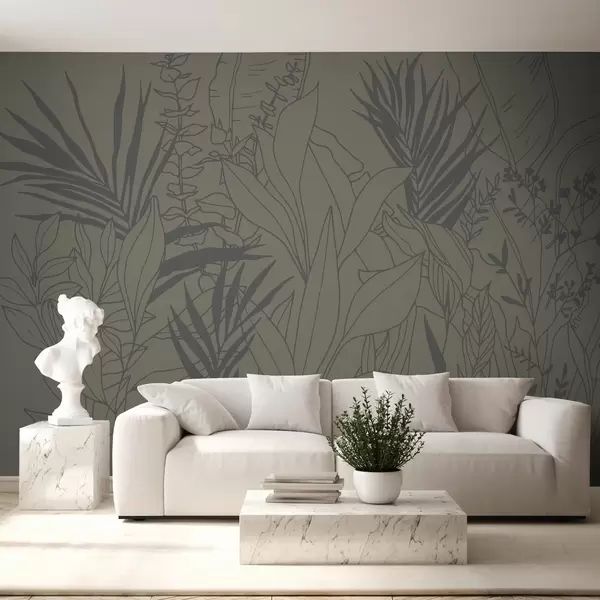 Fotomurales Arte lineal botánico en tonos oliva Nr. w02775v3