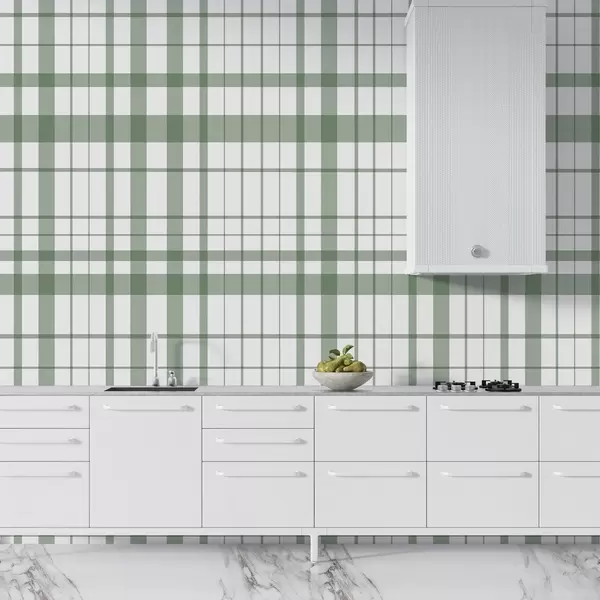 Fotomurales Diseño minimalista a cuadros con líneas finas y verdes sobre fondo blanco, austeridad geométrica Nr. w02852v3