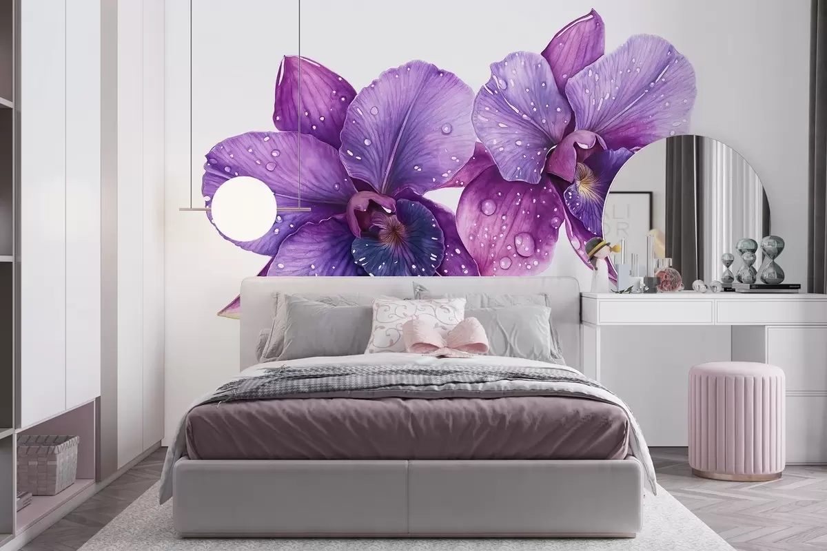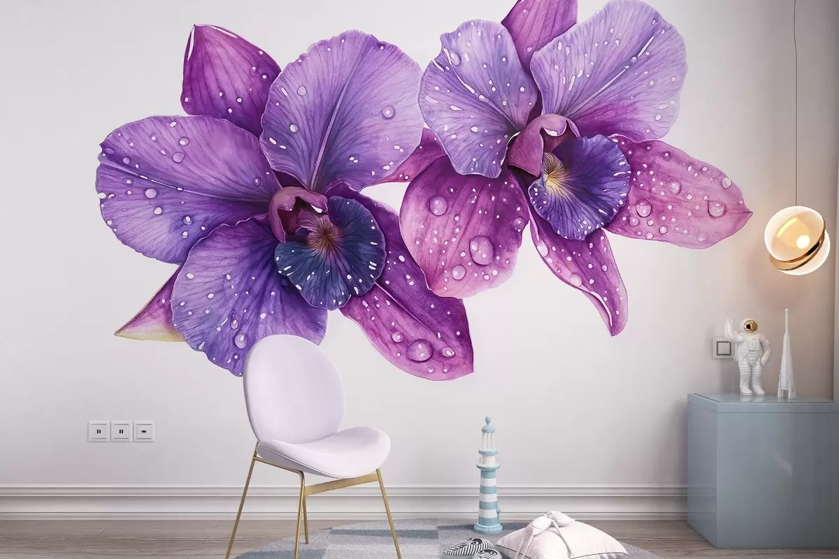 Fotomurales Hermosas flores de orquídea, dibujo estilo acuarela, colores violetas Nr. w03164