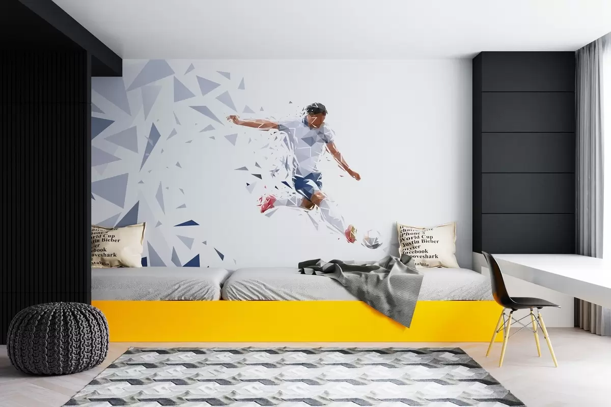 Fotomurales Futbolista dinámico con un estilo poco polvoriento, golpeando el balón Nr. w03289