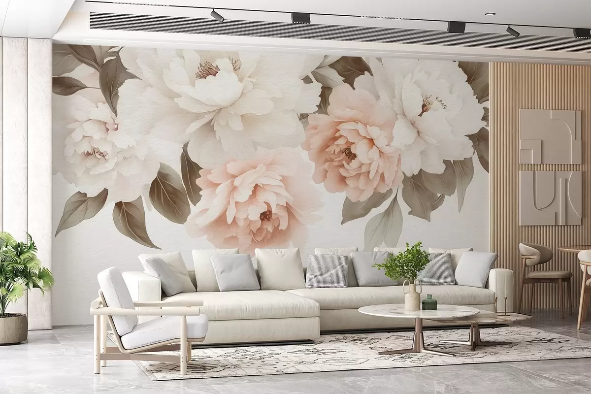 Fotomurales Delicadas peonías vintage en acuarela Nr. w03317