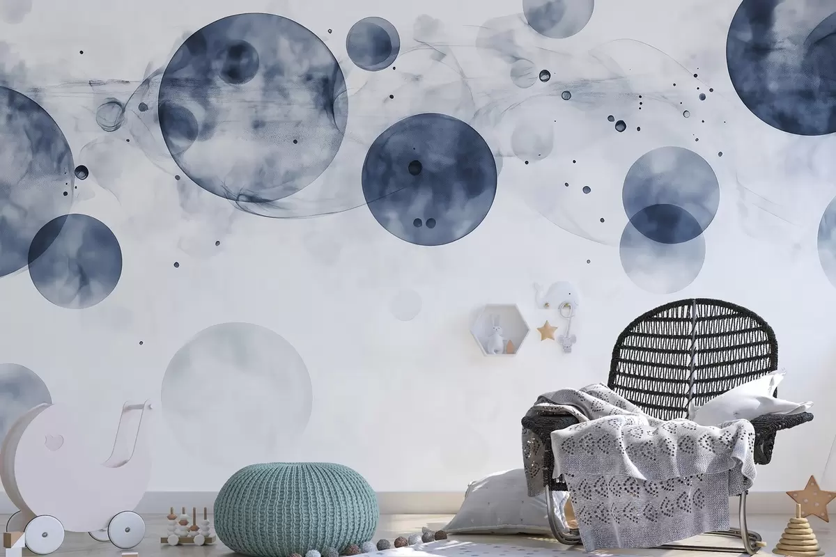 Fotomurales Círculos estilo acuarela, abstracción, etéreo, arte fluido, colores grises Nr. w03405