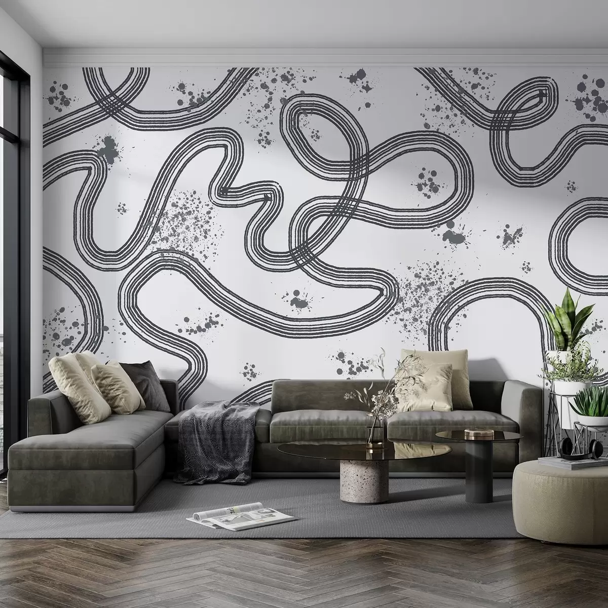 Fotomurales Dibujo lineal, salpicaduras de pintura, minimalismo, color gris Nr. w03408v2