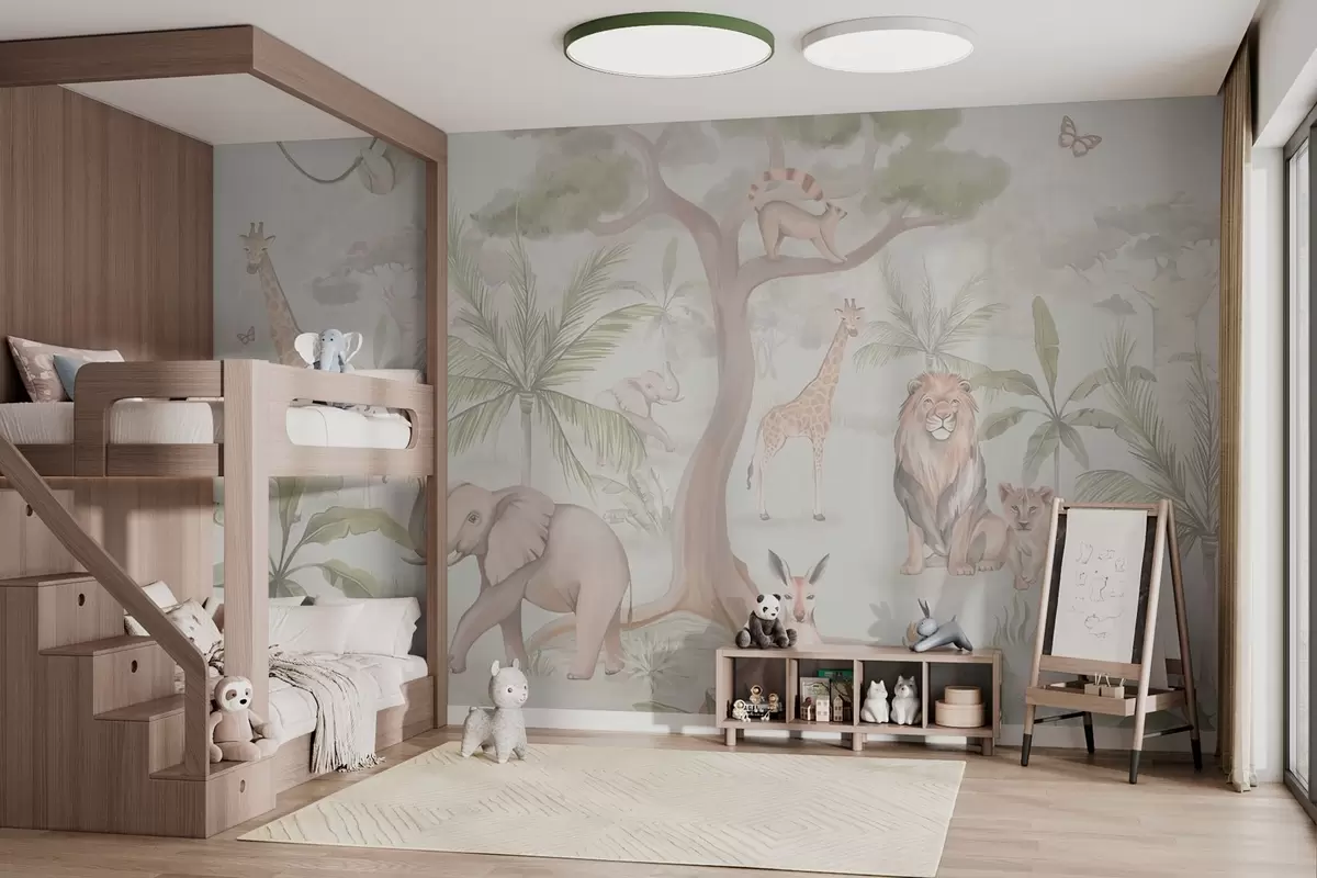 Fotomurales Panorama de selva con animales en colores claros Nr. w03444v1