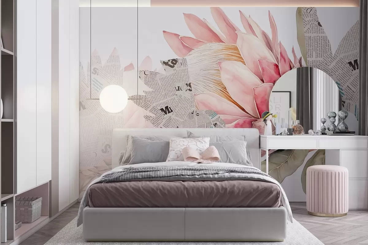 Fotomurales Flores de protea, arte periodístico, floral, tropical, colores naturales Nr. w03667