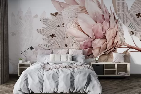 Fotomurales Flores de protea, arte periodístico, floral, tropical, colores beige pastel Nr. w03667v4