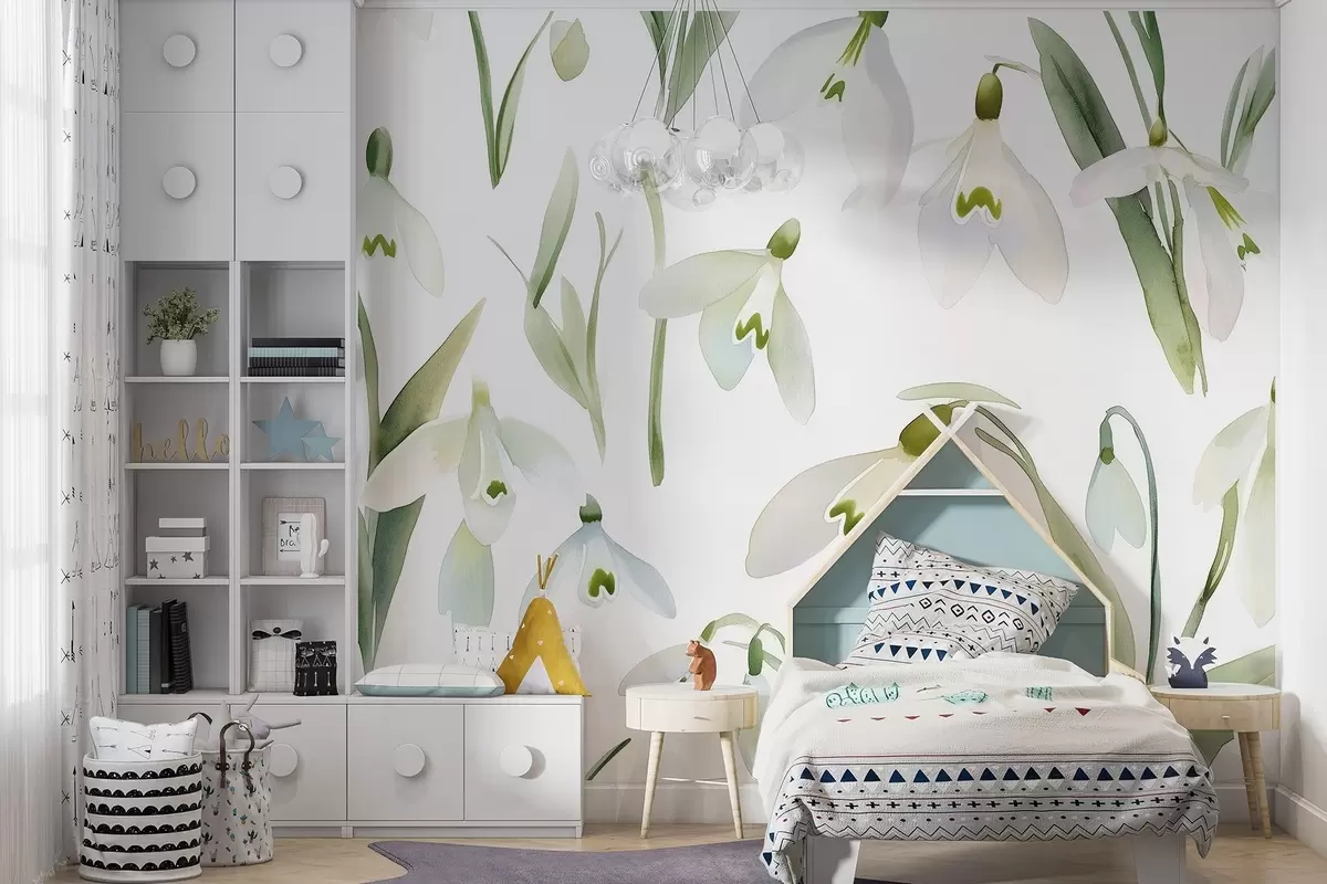 Fotomurales Snowdrops flores en estilo acuarela, colores naturales Nr. w03754