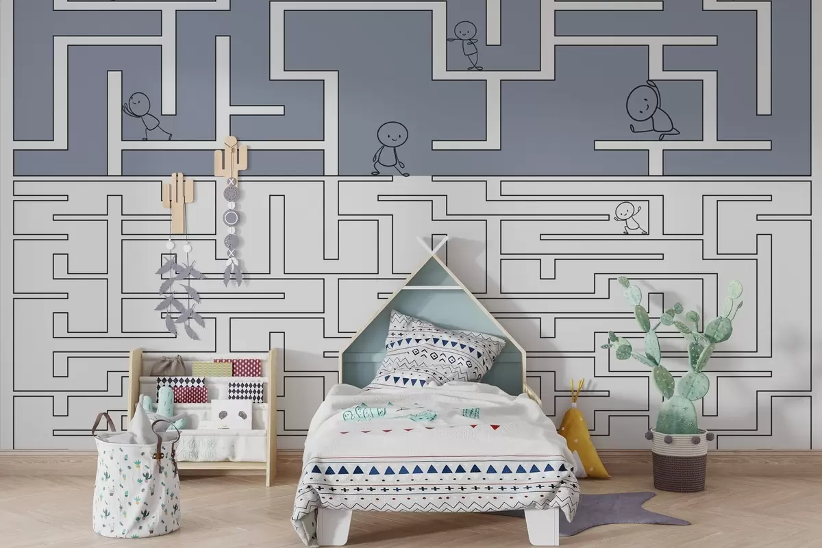 Fotomurales Laberinto en azul y blanco Nr. w03873v2