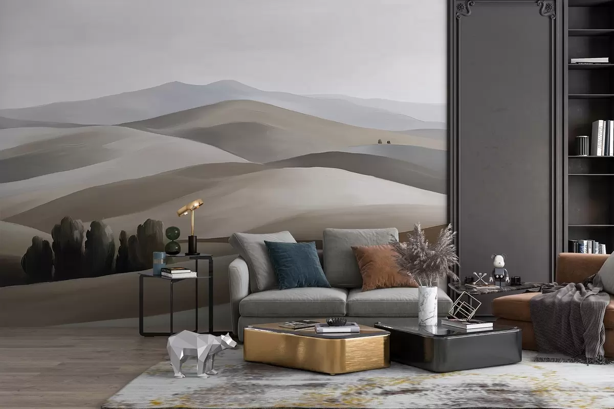 Fotomurales Paisajes con árboles, Toscana, colores beige y gris, estilo óleo Nr. w03880v1