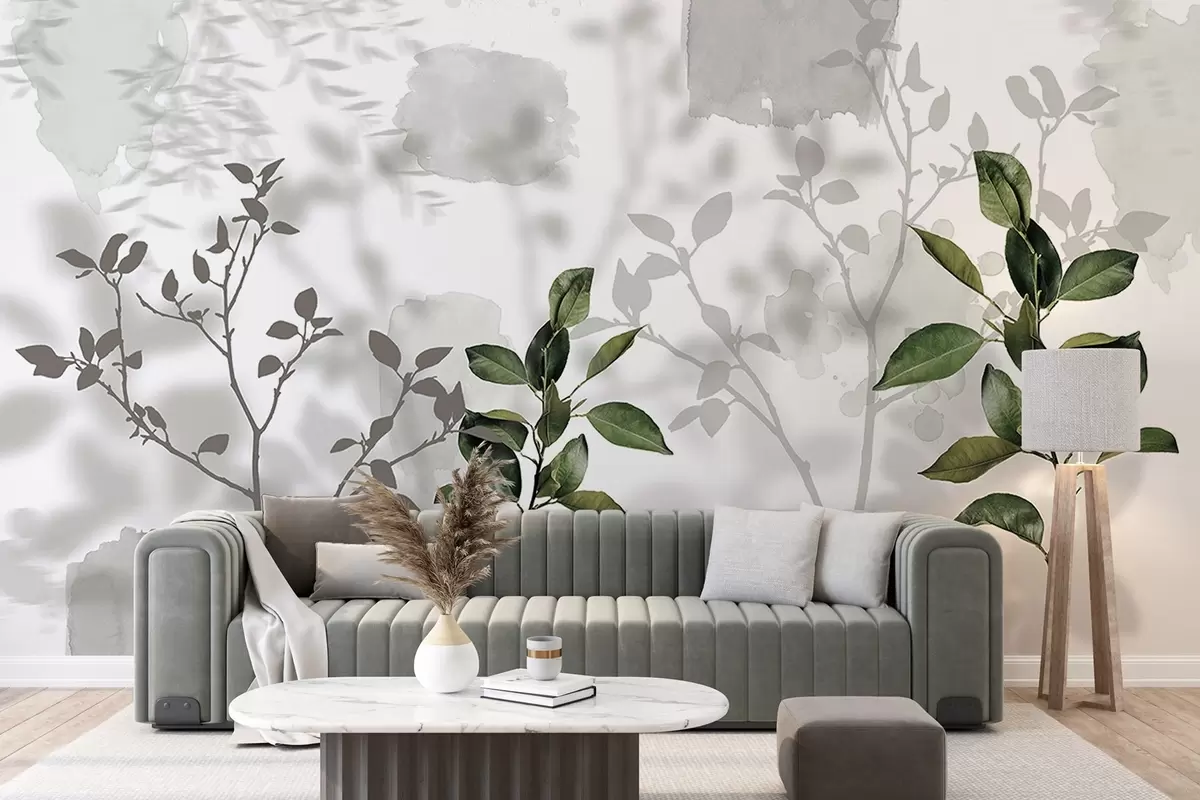 Fotomurales Hojas de limonero, ramas de arbol sombras, naturaleza, acuarela, verde Nr. w03910v1
