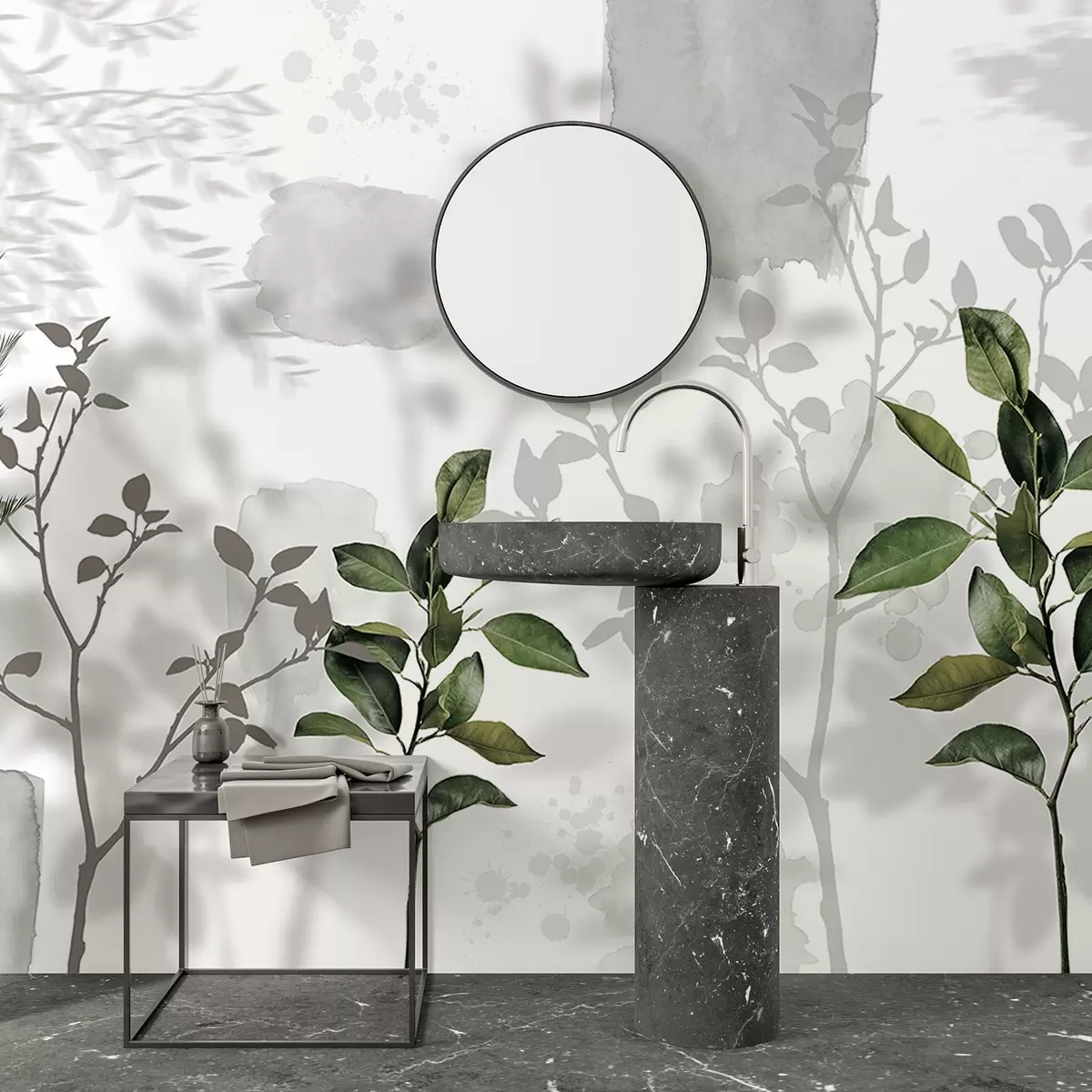 Fotomurales Hojas de limonero, ramas de arbol sombras, naturaleza, acuarela, verde Nr. w03910v1