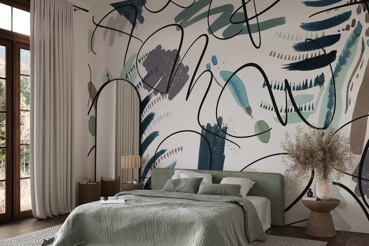 Fotomurales Letras de tinta, caligrafía, pinceladas, colores azules, abstracción Nr. w03912v2