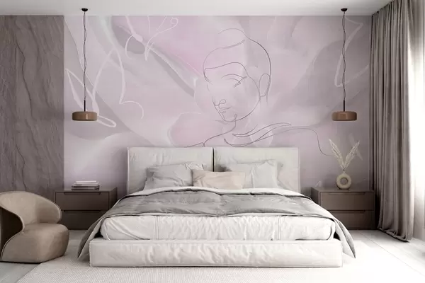 Fotomurales Abstracción floral con dibujo lineal de Buda, colores rosas Nr. w04004v2