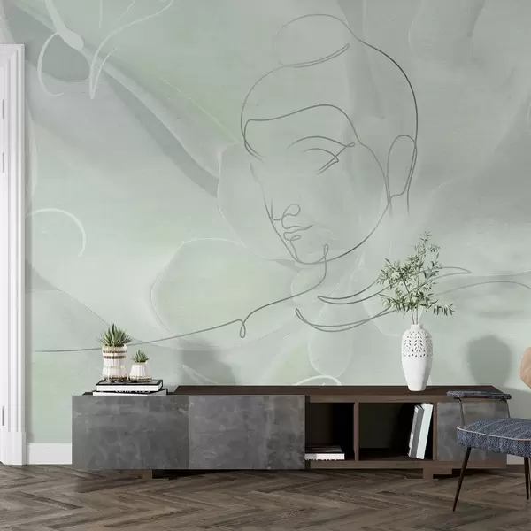 Fotomurales Abstracción floral con dibujo lineal de Buda, colores verdes Nr. w04004v3