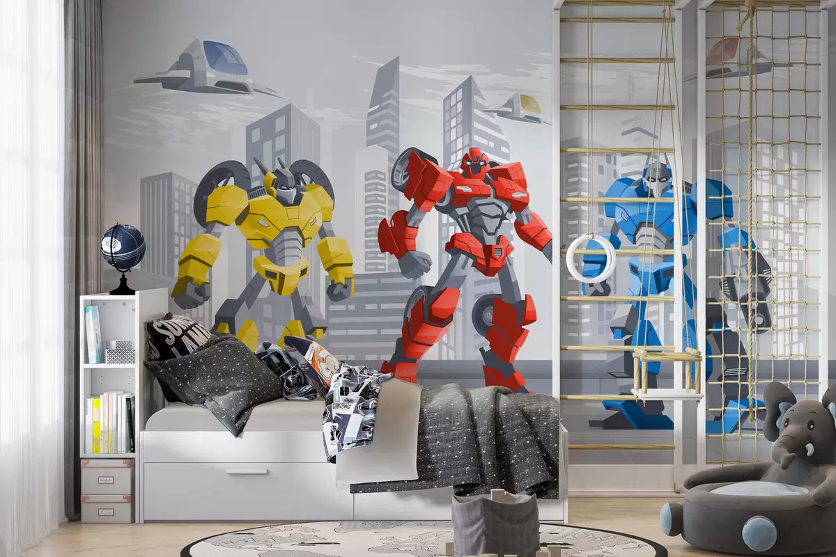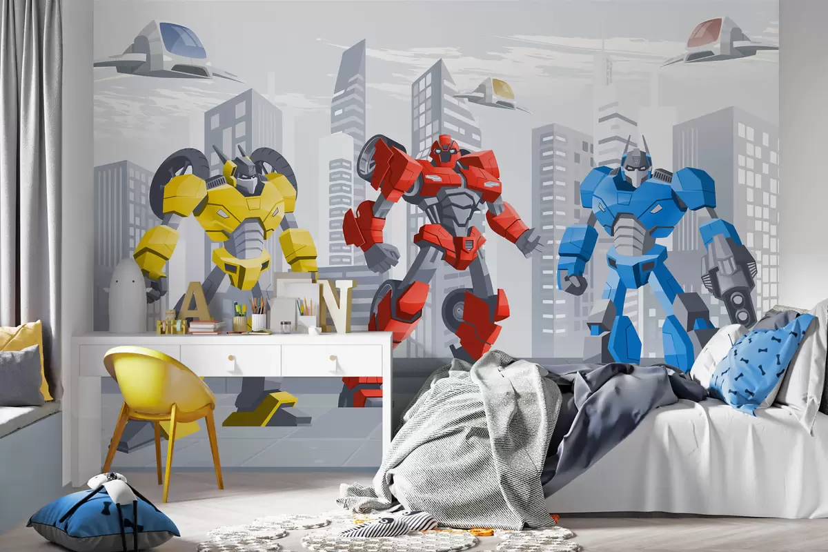 Fotomurales Robots transformadores con el telón de fondo de una ciudad monocroma Nr. w04012