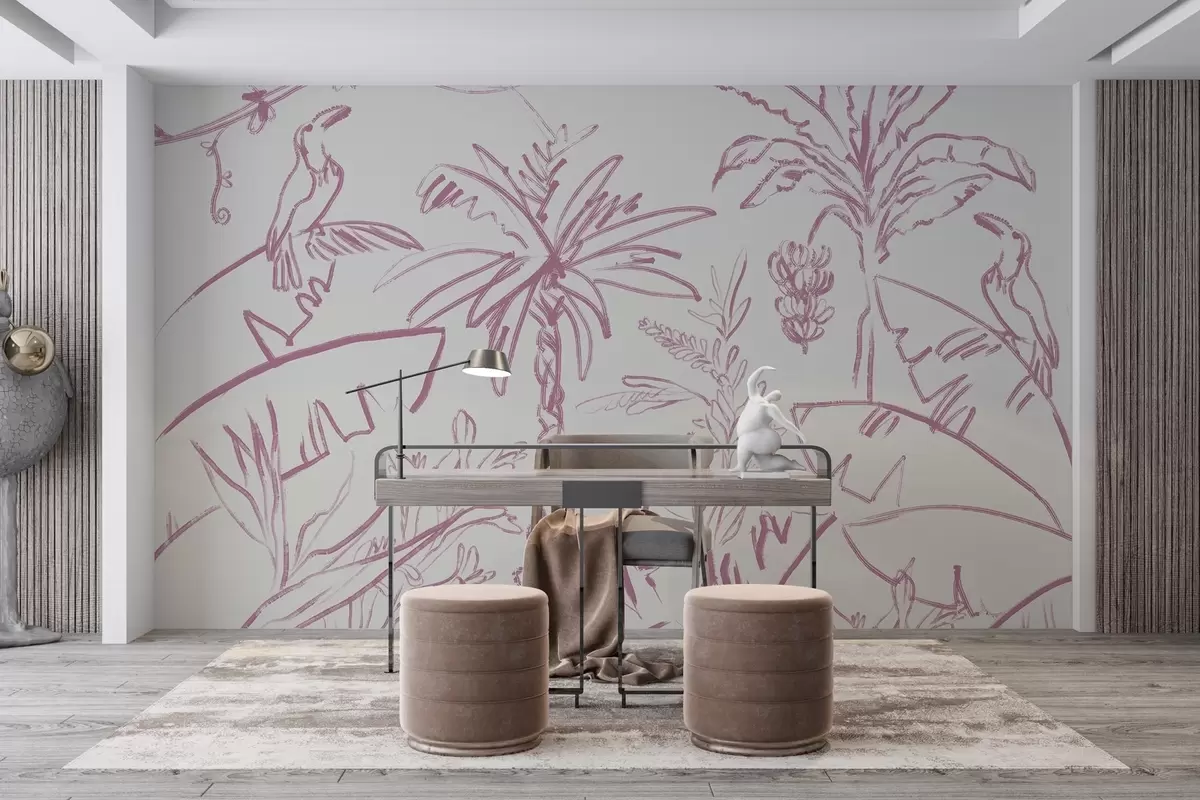 Fotomurales Líneas tropicales en rosa, plantas tropicales, plátanos Nr. w04020v2