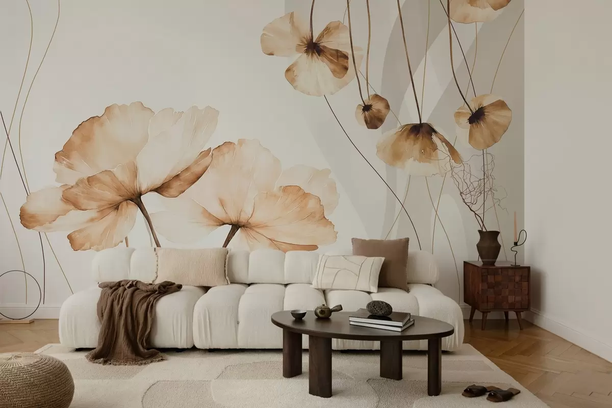 Fotomurales flores estilo acuarela en tonos marrones Nr. w04026