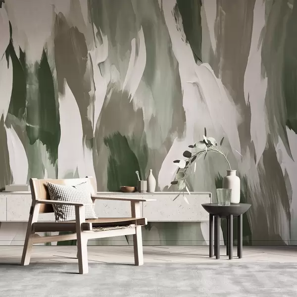 Fotomurales Composición abstracta de pinceladas en verdes terrosos, taupes y marfil, que evocan un ritmo terrenal inspirado en la naturaleza Nr. w04035v1