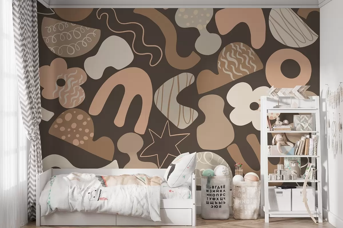 Fotomurales Figuras geométricas con garabatos dibujo, juvenil, fondo beige oscuro Nr. w04068v1