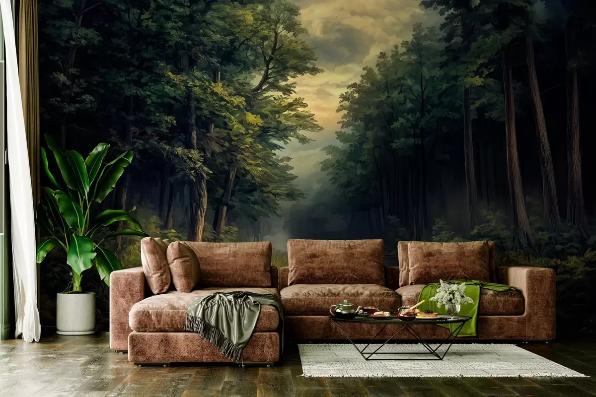 Fotomurales Bosque con ciervos y río al estilo del óleo holandés Nr. w04072