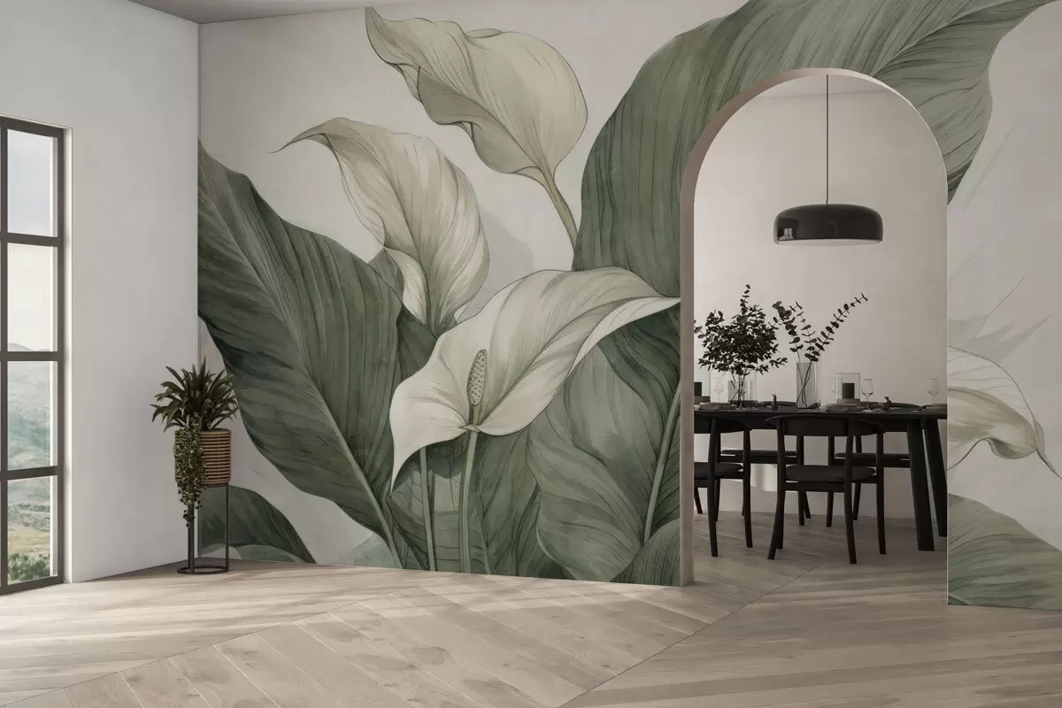 Fotomurales Primer plano de spathiphyllum en flor con hojas grandes Nr. w04263