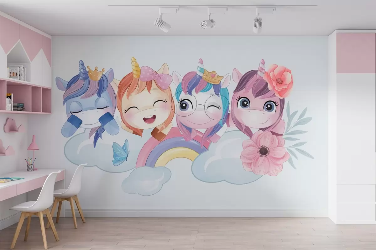 Fotomurales Bonitos unicornios entre nubes y arco iris Nr. w04298