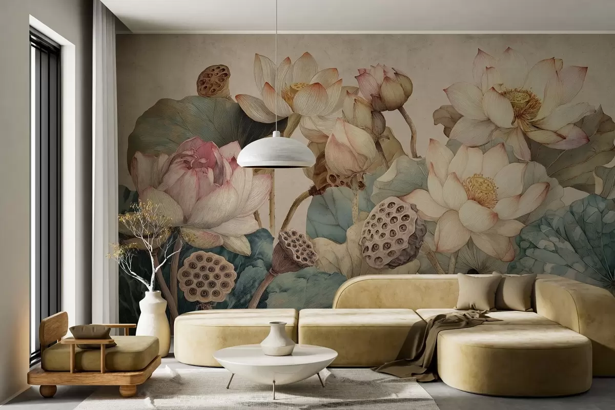 Se puede limpiar suavemente con una esponja suave. Los murales de pared con recubrimiento de barniz pueden limpiarse con agua.
