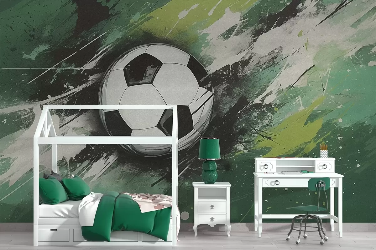 Fotomurales Balón de fútbol con un graffiti borroso de fondo Nr. w04467