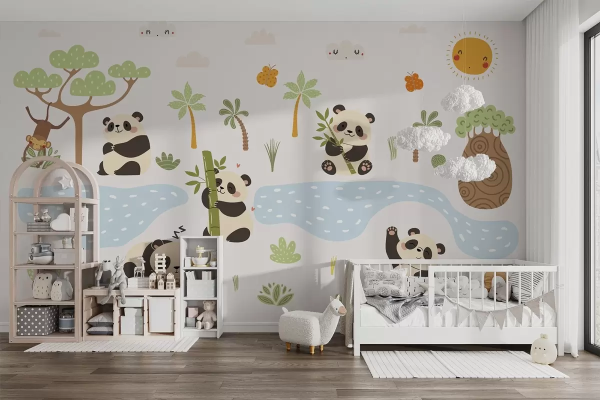 Fotomurales Pandas alegres junto al río Nr. w04541