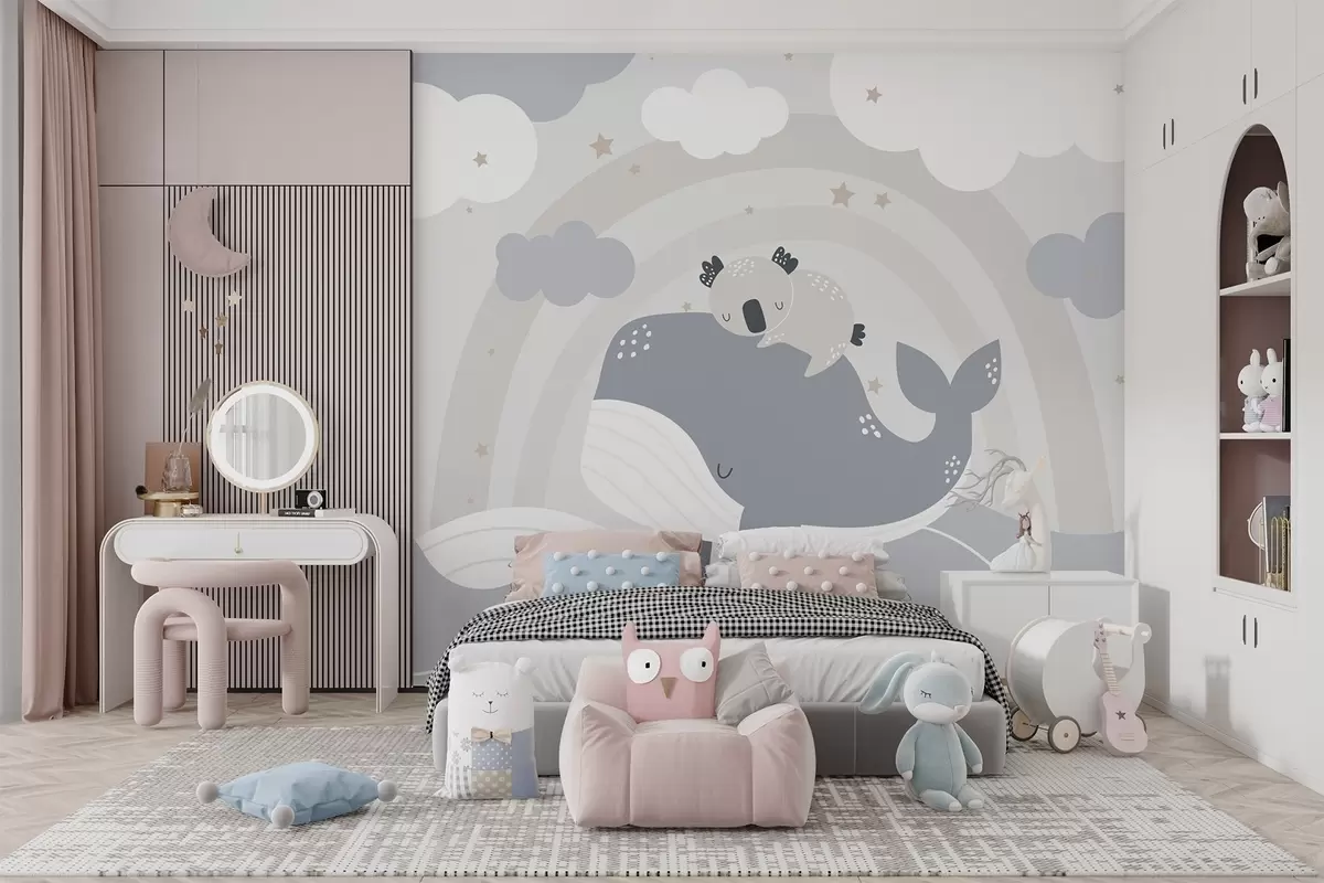 Se puede limpiar suavemente con una esponja suave. Los murales de pared con recubrimiento de barniz pueden limpiarse con agua.