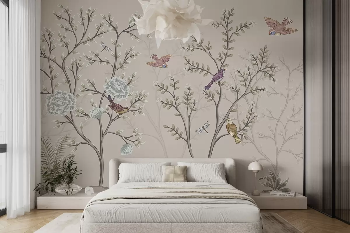 Fotomurales Árboles con pájaros y flores Nr. w04605