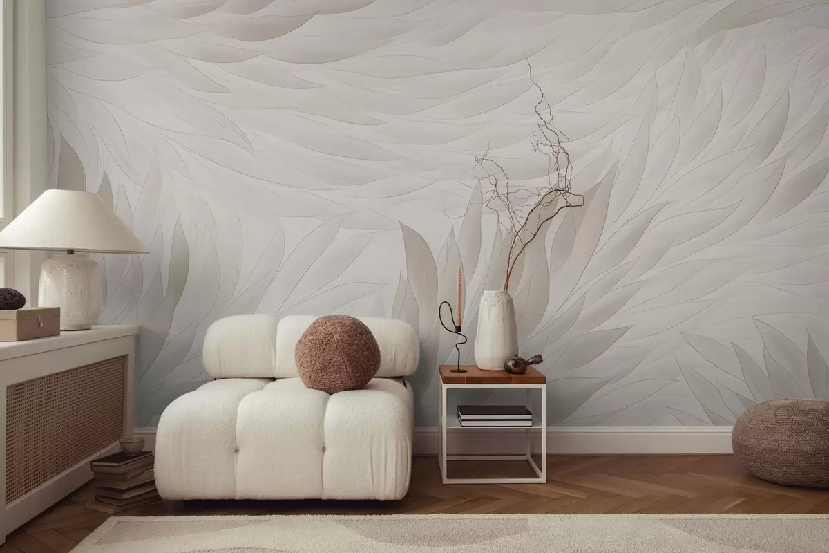 Fotomurales Hojas onduladas en suaves tonos crema Nr. w04610