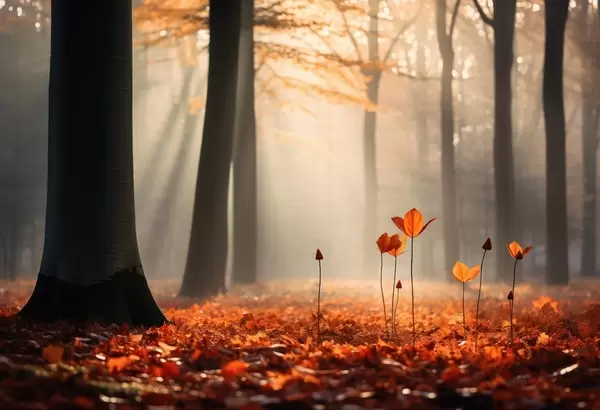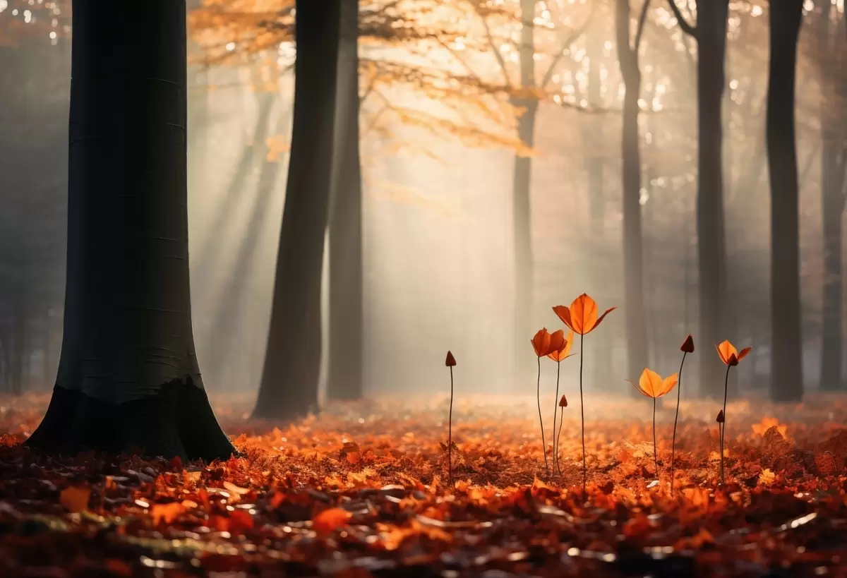 Fotomurales Bosque otoñal con rayos de sol y follaje brillante Nr. w04710