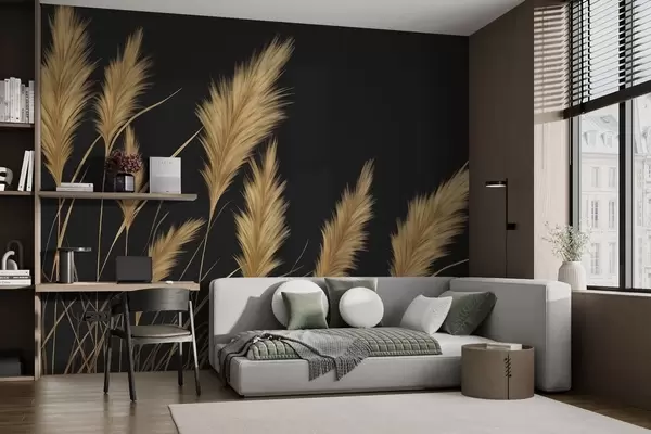 Fotomurales Espigas de trigo esponjosas sobre un fondo oscuro Nr. w04734