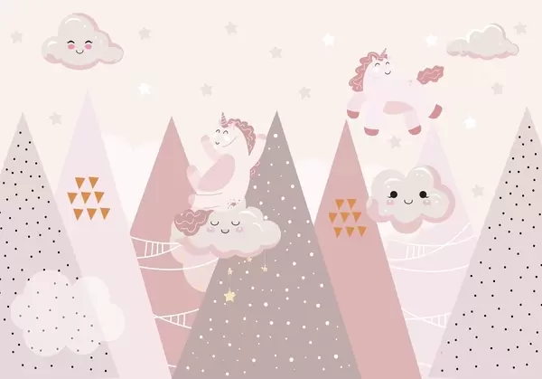 Fotomurales Poni en las montañas con nubes Nr. w04741