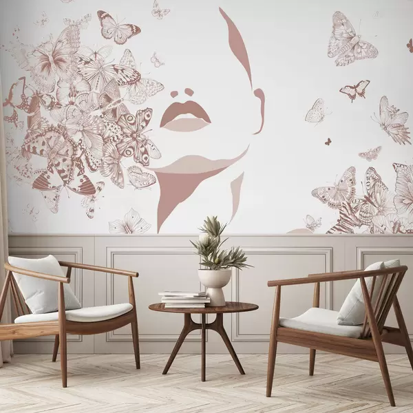 Fotomurales Silueta de un rostro entre mariposas Nr. w04778