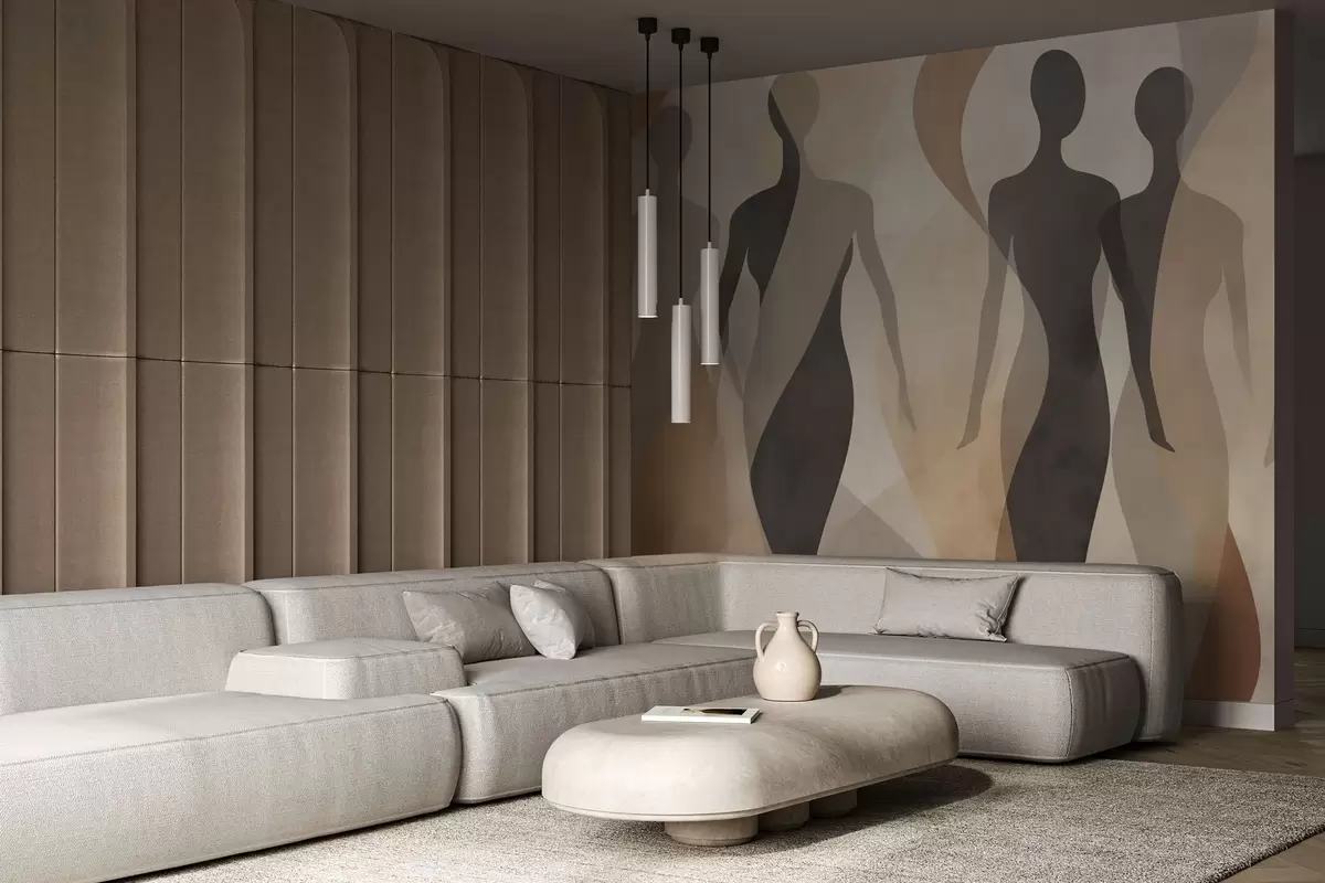 Fotomurales Siluetas y suaves ondas en cálidos tonos beige grisáceos. Nr. w04787