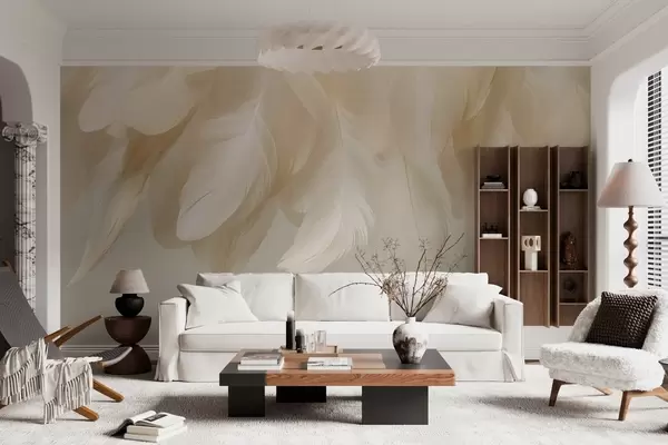Fotomurales Plumas colgantes exuberantes y delicadas en tonos relajantes. Nr. w04842