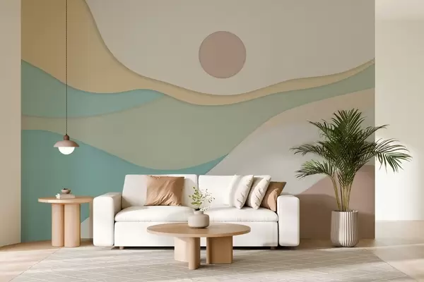 Fotomurales Abstracción minimalista con formas suaves y onduladas que recuerdan paisajes fluidos y dunas Nr. w04874