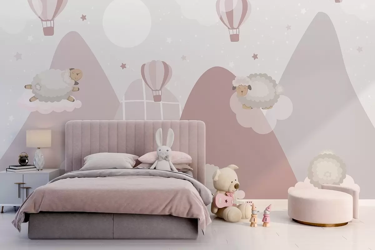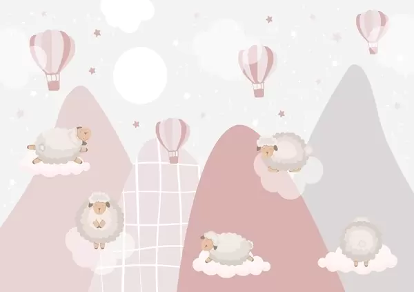 Fotomurales Ovejas durmiendo en montañas rosadas Nr. w04932