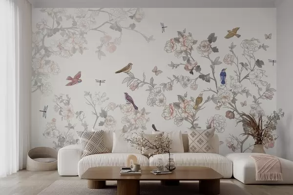 Fotomurales Pájaros cerca de ramas con flores Nr. w04939